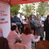 Pasaules Sirds dienas 2014 pasākumā bija liela interese par jauno izdevumu Sirds un veselība, kuru simtiem interesentu steidza izlasīt, jau gaidot savu rindu pie speciālista, lai izmērītu asinsspiedienu un pulsu, kā arī saņemtu citas konsultācijas par un ap sirds veselību. Foto: Kaspars Garda.